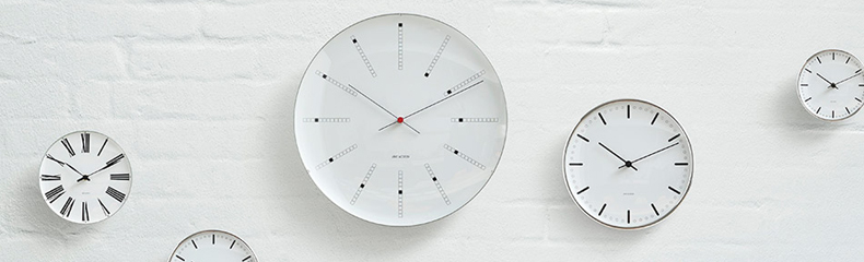 ARNE JACOBSEN アルネ ヤコブセン 通販|アクセサリ1971年に巨匠アルネ・ヤコブセンによってデザインされた『バンカーズ クロック』。デンマーク国立銀行を設計した際トータルデザインに基づき中を飾る家具や水栓器具らとともに手掛けたウォールクロック。