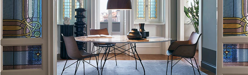Kartell(カルテル)のLouis Ghost(ルイ・ゴースト)は、バロックスタイルの現代風アレンジから生まれた独特の魅力が新鮮な椅子。ポリカーボネート樹脂を使った一体型射出形成としては、世界でも代表的な例といえます。衝撃や傷に強く、屋外でも使用でき、6脚まですたっキングできます。カリスマ性と美的アピールの強いアイテムで、あらゆる住居空間や公共スペースに不思議なほど馴染み、ちょっぴり皮肉なエレガンスを添えます。