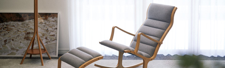 軽量で丈夫が特徴。お部屋の好きな場所へ移動させて至福のひとときを。ロッキングチェアの欠かせないパートナー。